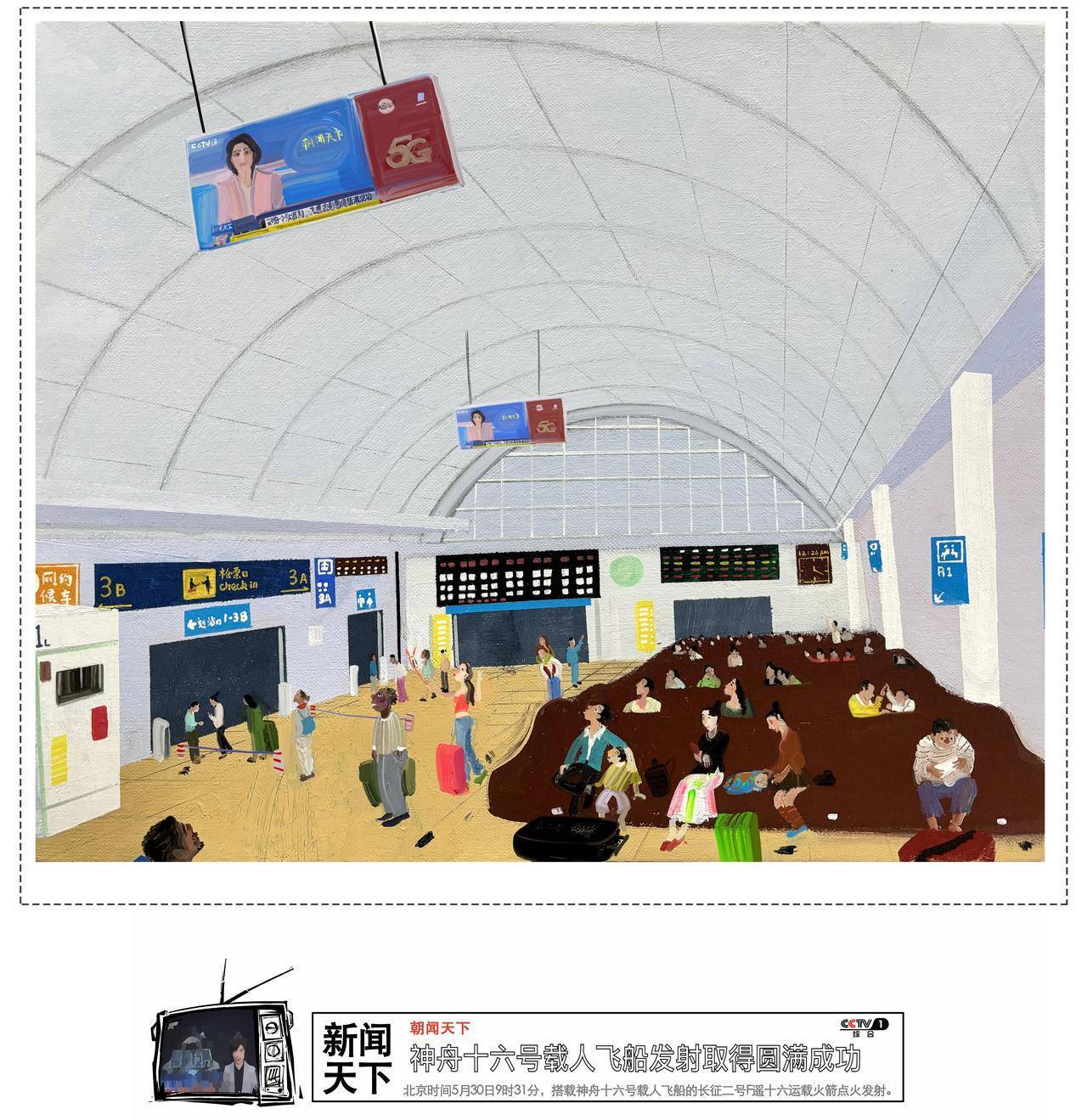 插图《新闻达天下》的整体架构犹如一条精心编织的纽带,将四个不同时段的场景紧密相连依次展现了人们从早到晚的生活状态,将不同时段的新闻元素与社会生活紧密融合,全方位地展示了新闻在人们日常生活中的重要性,以及新闻传播对社会发展的积极推动作用。