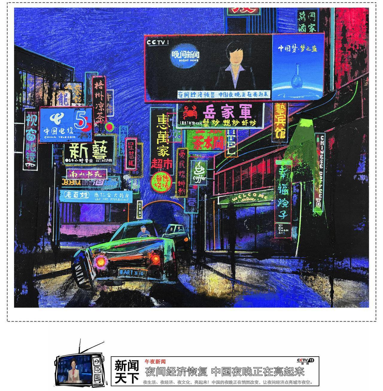 《午夜新闻》呈现的是深夜时分,城市的街道逐渐安静下来,夜间经济却从未停止。画面中,五彩的霓虹灯散发着柔和的光芒,出租车、网约车也忙络起来,这一场景体现了夜间的持续性和重要性,即使在深夜,晚间新闻也在为人们传递着最新的信息。