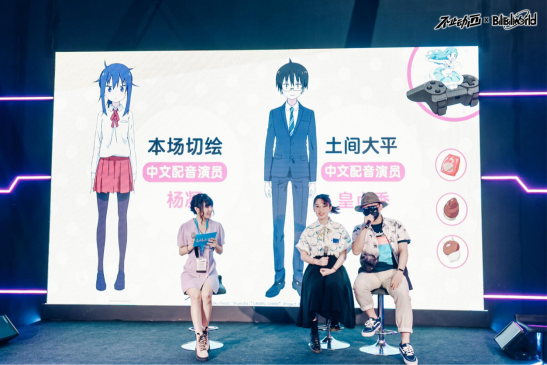 是的,你没看错,这是《紫罗兰永恒花园》(以下简称京紫)的中配版。在7月9日至11日的BilibiliWorld活动上,“不止动画”的展厅内,一共播出了四部中配日番,既有前几年大火的治愈系动画《干物妹!小埋》,也有狗粮恋爱番《理科生坠入情网,故尝试证明。》(以下简称《理科生》)和《堀与宫村》,还包括被誉为极具艺术气质的京紫。