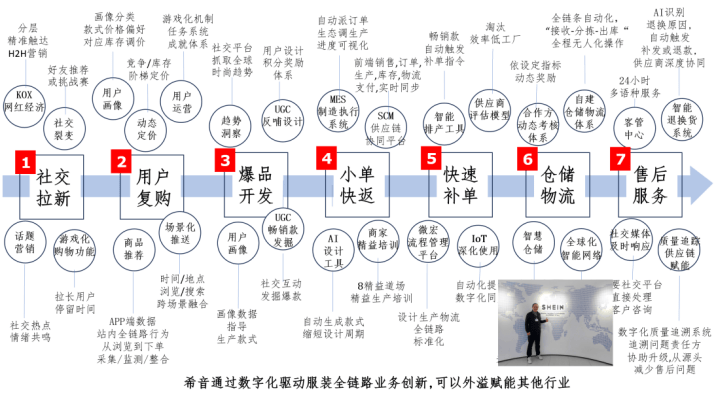 SHEIN(希音),从16年的规模不到人民币5亿,后来到80亿,再到200亿、800亿、1200亿,去年达到2500亿。通过数字化让整个行业结构升级。